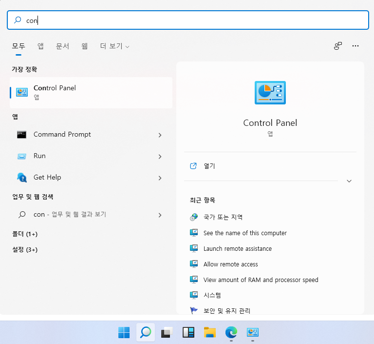 시작메뉴 -> control panel 검색하시면 나옵니다.