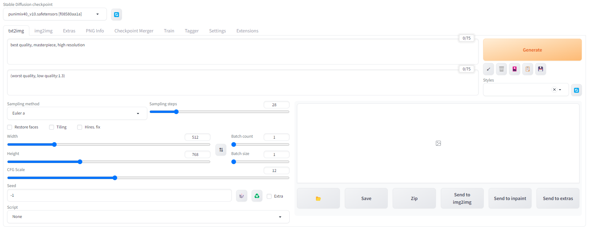 기본적으로 여러분들이 Stable Diffusion WebUI 를 설치하시면 이런 화면이 보일겁니다.