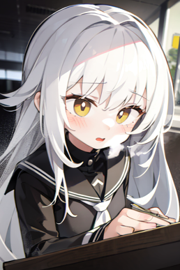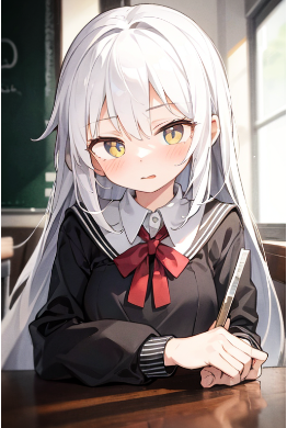 그럼 예시를 한번 보여드리겠습니다. 이번에도 똑같이 이미지베이스는 고정한 상태로 Sampling method만 바꿔보겠습니다. 태그는 white hair, 1girl, student, long hair 4가지 태그를 긍정 프롬프트에 넣고, 부정프롬프트에는 19금 이미지 방지를 위해 nsfw 하나만 입력하고 돌려보겠습니다.
